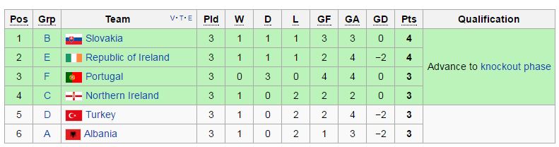Urutan tiga terbaik Euro 2016