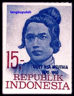 Prangko Cut Nyak Meutia dalam ejaan lama Tjoet Nja Meuthia tahun 1969