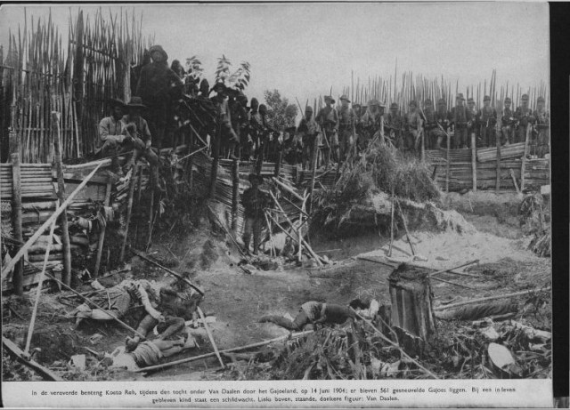 Seluruh penghuni benteng Koeta Reh di bantai oleh pasukan Belanda pimpinan Van Daalen (Perang Aceh 1873-1904)