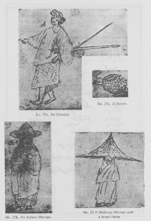 Sketsa Orang Aceh Zaman Iskandar Muda dan buah durian berdasarkan ingatan pelancong Eropah