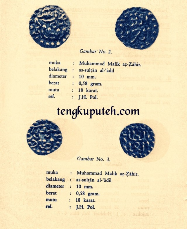 Ungkapan as-sultân al-Adil seperti yang terdapat pada bahagian belakang derham Pasai dipakai pula oleh sultan-sultan kerajaan Aceh Dar as-salam dari mulai Sultan Salah ad-Din (1405-1412) sampai dengan Sultan Ri’ayat Syah (1589-1604 M.), sedangkan sejak Sultan Iskandar Muda (1607 —1637 M.), kata-kata as-sultan al-Adil tidak lagi dipergunakan pada derham Aceh.