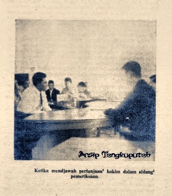 Thaib Adamy ketika menjawab pertanyaan-pertanyaan para hakim pada persidangan Pengadilan Negeri Sigli yang dipimpin oleh hakim Chudari tahun 1963.