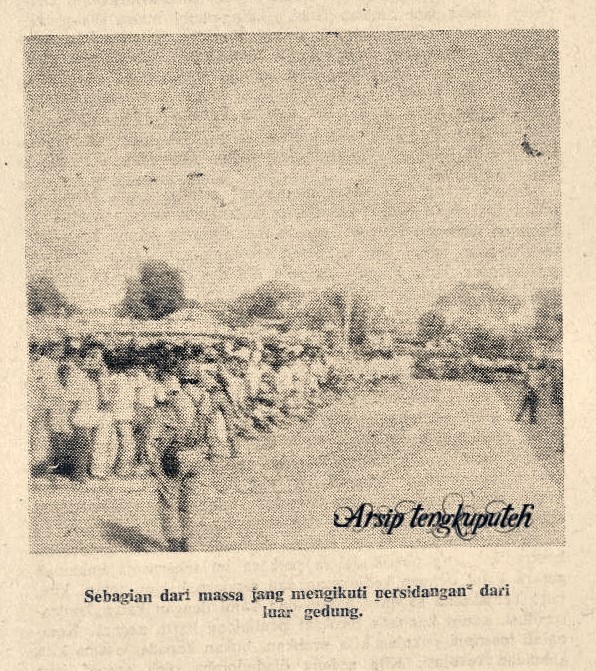 Sebagian Massa yang mengikuti persidangan Thaib Adamy dari luar gedung Pengadilan Negeri Sigli tahun 1963.