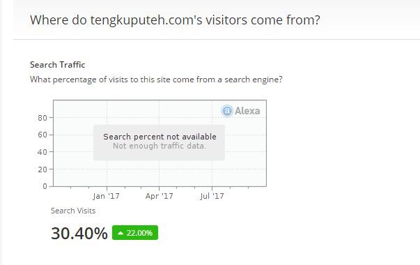 Menurut Alexa 38.40% visitor https://tengkuputeh.com datang dari Search Engine apakah itu berupa google, yahoo, yandex, pinterest dan sebagainya. (Keadaan 3 Oktober 2017 pukul 19.30 WIB)