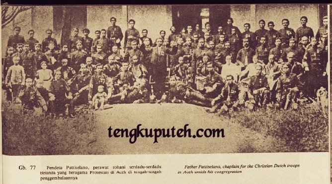 Pendeta Pattiseno, perawat rohani serdadu-serdadu Belanda yang beragama Protestan di Aceh di tengah-tengah penggembalaannya.