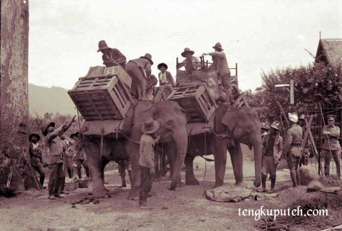 Ekspedisi Pasukan Marsose ke pedalaman Lamlo, Pidie menggunakan sarana transportasi gajah dikarenakan medan yang berat.