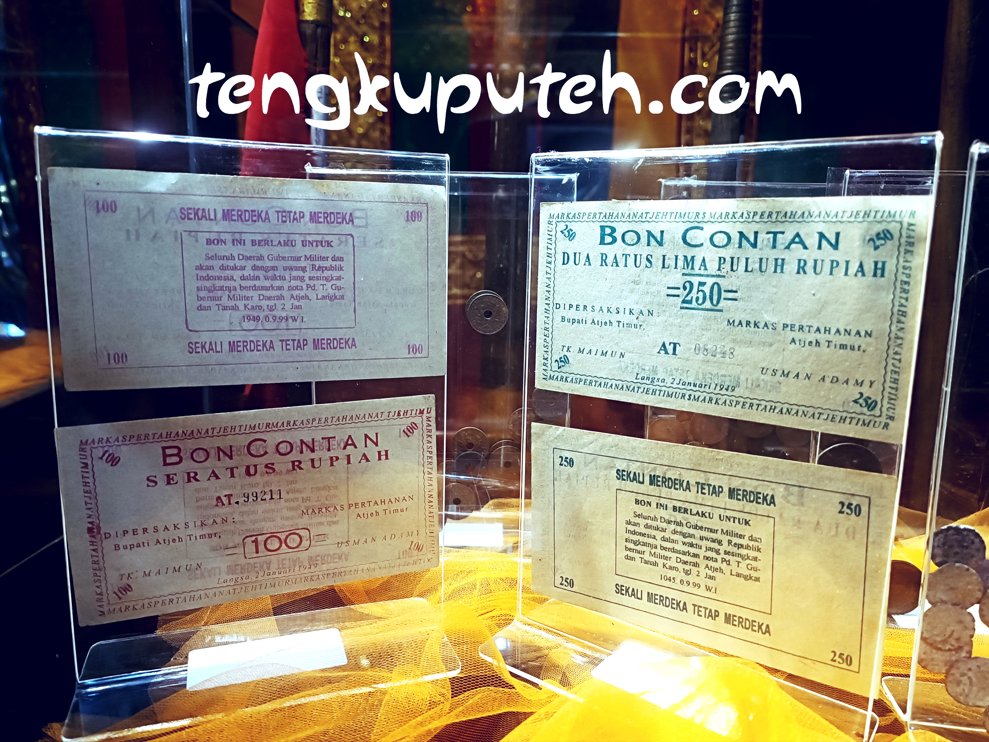 Oeang Republik Indonesia Daerah Aceh dicetak di Langsa. Arsip Museum Kota Langsa dipamerkan pada Pekan Kebudayaan Aceh ke VIII