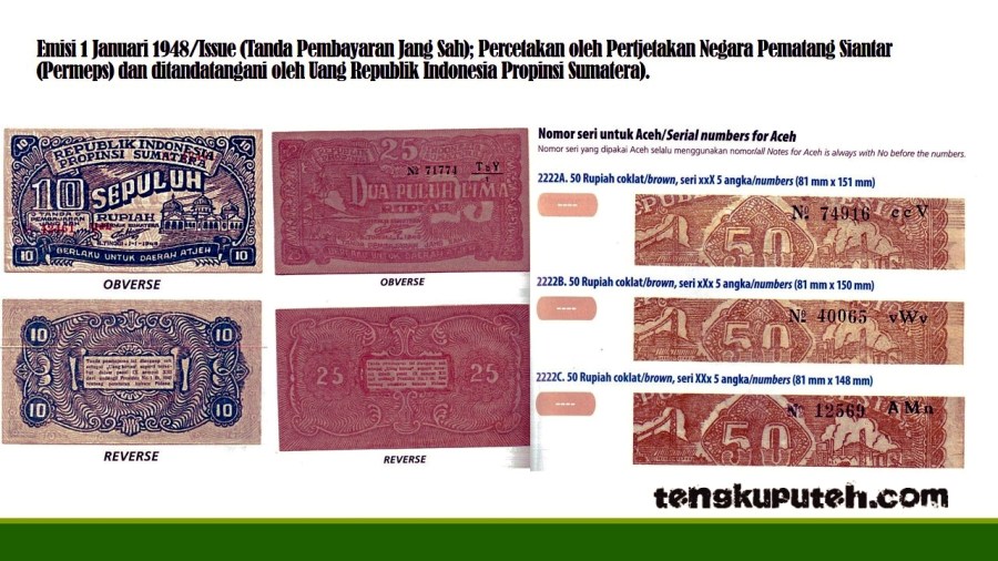 URIPS ATJEH; Emisi 1 Januari 1948/Issue (Tanda Pembayaran Jang Sah);